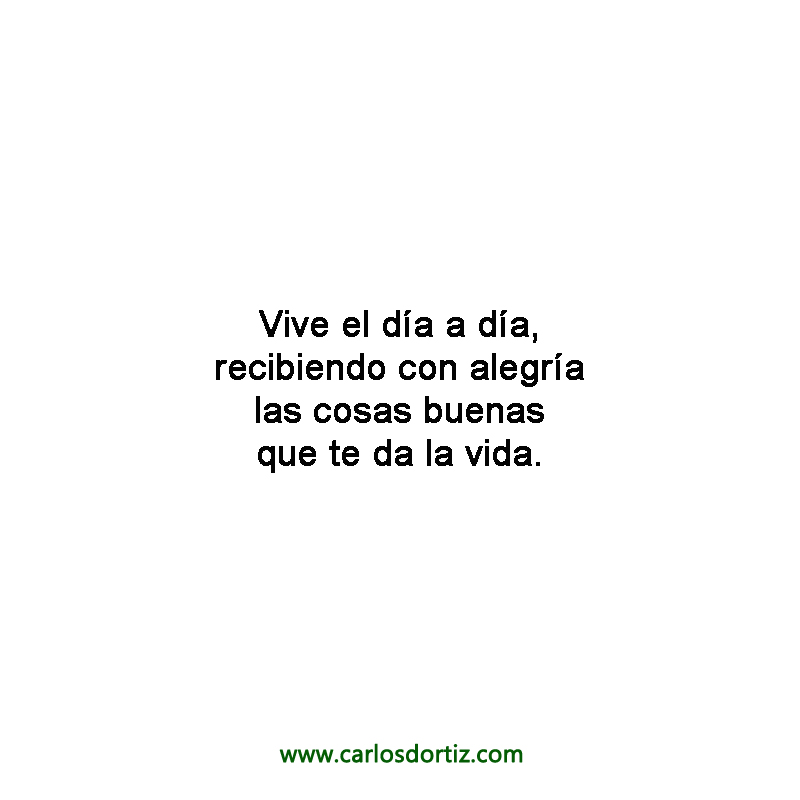 Vive el día a día, recibiendo con alegría las cosas buenas que te da la vida.