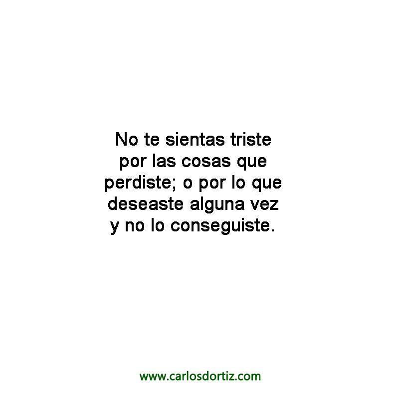No te sientas triste por las cosas que perdiste; o por lo que deseaste alguna vez y no lo conseguiste. Recuerda que en esta vida siempre gana el que mas persiste.