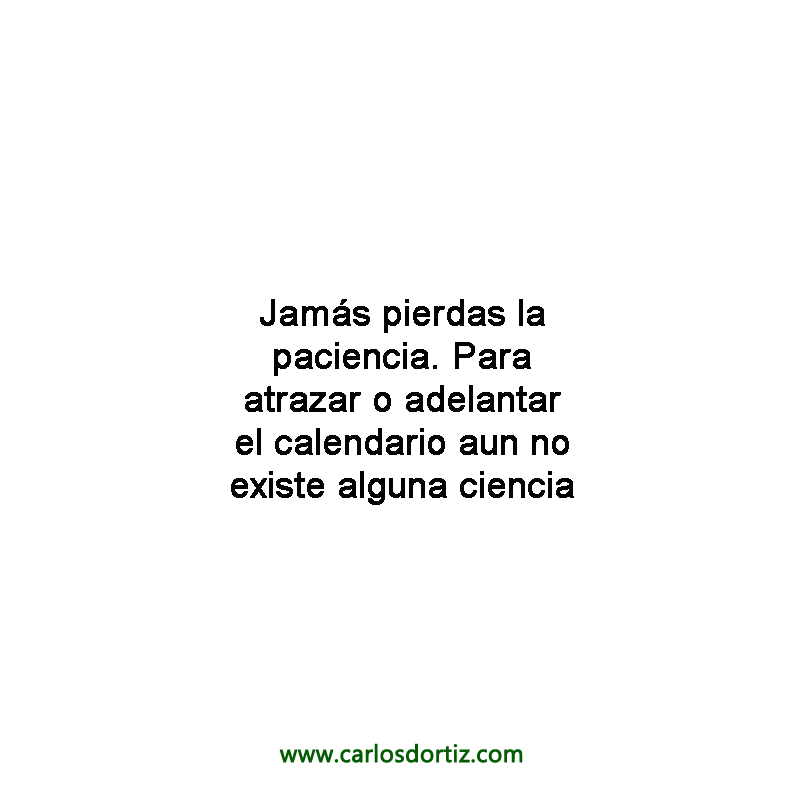 Jamás pierdas la paciencia. Para atrazar o adelantar el calendario aun no existe alguna ciencia.